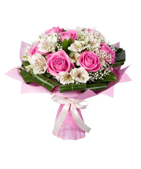 Любимое миллионами сочетание роз и альстромерий получило новое воплощение в букете «Девичья нежность». Красивые цветы нежных розовых и белых цветов смотрятся вместе непередаваемо, такой букет запомнится на всю жизнь. Оформление дополняет гипсофила и аспидистра, делая букет зеленее и приятнее. Цветы подойдут не только любимой, но и друзьям или коллегам.