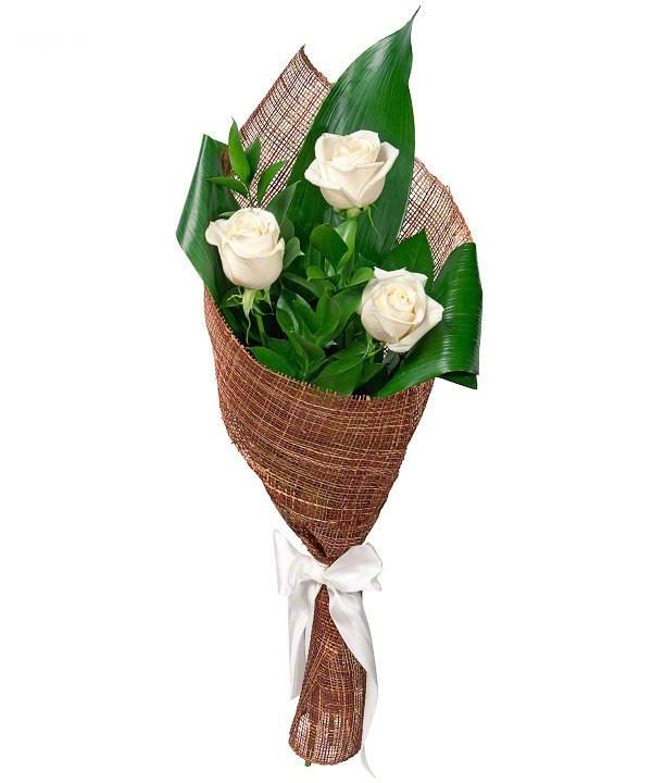 Хотите сделать жест внимания? Букет станет прекрасным помощником в этой задаче. Он состоит из трех белых роз на ножке 50 сантиметров, цветы издавна олицетворяют нежность, невинность и светлые чувства. Цветочная композиция прекрасно подойдет для подарка на свидании и без лишних слов выразит эмоции, таящиеся внутри. Нежный запах ненавязчиво окутает и погрузит в романтичное настроение. Каждая женщина мечтает получить стильный букет и воплотив ее желание, вы точно об этом не пожалеете.